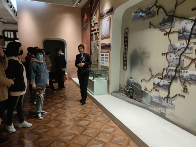 初入展厅,记录着东北铁路风云岁月的画卷在眼前展开。从抗日战争时期,到解放战争时期,再到新中国成立后,处处挥洒着东北铁路建设者的汗水与鲜血,红色的铁路精神沿着铁轨绵延万里。毛泽东号、朱德号、铁牛号三列火车的模型陈列于此,仿佛带着冲破漫漫长夜的势头在向前飞驰。展品柜中陈列的,是曾经铁路工人使用过的各式书本、工具、服装和生活用品。目睹这些物品,好像置身先辈们为铁路建设事业奠基的峥嵘岁月,火车的轰鸣声在耳边回响,工人喊出的劳动号子铿锵有力。踩在百年地砖、百年钢轨之上,观赏哈尔滨火车站等百年建筑的模型,一股浓厚的历史感油然而生。改革开放后,中国铁路进行了体制改革,本着“交通强国,铁路先行”的精神,东北铁路迎来了又一次大规模的建设热潮。在展厅中央的沙盘上,一张四通八达的铁路网连接着东北地区的每一个角落。参观的最后,展厅的墙壁上播放的全景视频,回顾了东北铁路建设的光辉历史,展望了继续发扬红色铁路精神、使东北铁路交通网更加完善的光明前景,效果震撼,令人心潮澎湃。