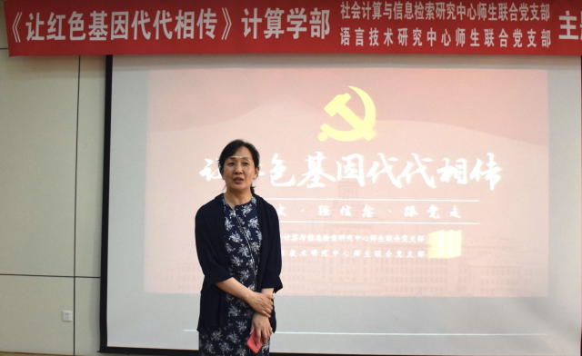 为延续计算机人许党报国的红色基因,扎实推进党史学习教育,5月21日下午,社会计算与信息检索研究中心师生联合党支部、语言技术研究中心师生联合党支部于活动中心327报告厅开展“让红色基因代代相传”主题党日活动,邀请原哈工大党委书记、中国中文信息处理学会名誉理事长、ACL终身成就奖获得者、全国五一劳动奖章获得者李生教授讲授了以“学党史、强信念、跟党走”为主题的党课。社会计算与信息检索研究中心师生联合党支部书记秦兵同志主持活动,计算学部党委副书记单既阳、社会计算与信息检索研究中心和语言技术研究中心全体师生参加活动。