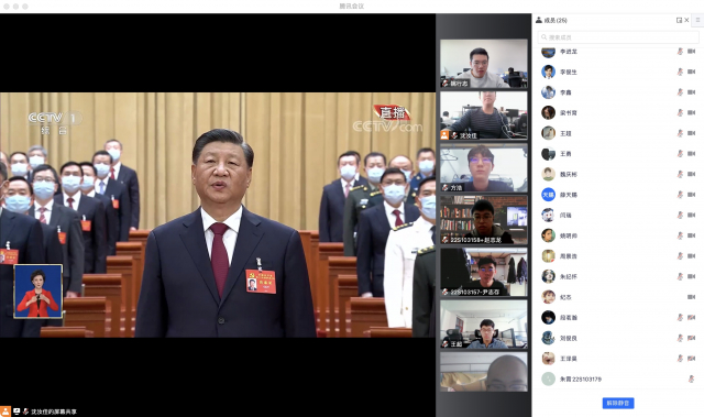 计算机网络与信息安全研究中心教工、博士生在科创大厦k1838以线上线下相结合方式集中收看