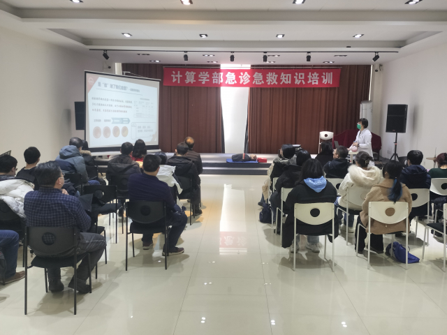 “休克停止呼吸要怎么抢救?突发心绞痛、心肌梗死怎么救助?”为帮助计算学部教职工了解日常救护知识,正确把握黄金救护时间,3月3日在活动中心208,学校医院、计算学部工会、计算学部智慧医疗研究所联合举办了一场急诊急救知识培训。邀请学校医院张凌燕副主任医师就内科常见病多发病相关知识和容易遇到突发状况如何及时进行急救处理,对计算学部选派的30余名教职工代表进行了应急培训。