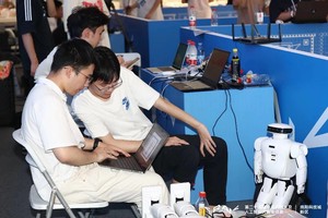 参赛选手正在调试机器人