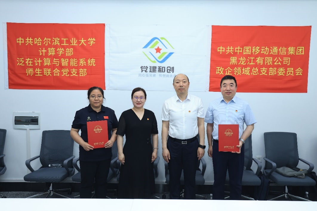 6月21日下午,计算学部泛在计算与智能系统师生联合党支部和中国移动通信集团黑龙江有限公司政企领域总支部开展联合主题党日活动。中国移动黑龙江公司党委委员、副总经理姜兴宗,中国移动黑龙江公司政企事业部总经理、党支部书记郅刚,计算学部党委书记单既阳,计算学部主任助理张伟男以及两个党支部师生党员共同参加活动。
