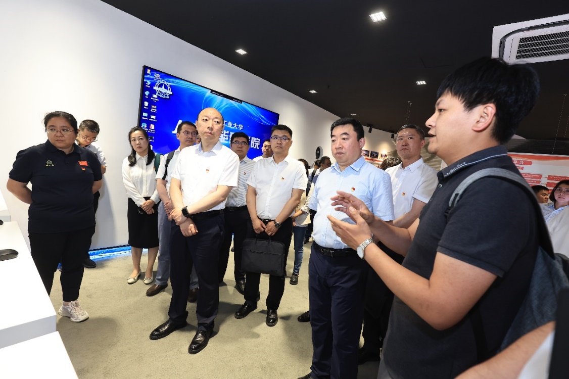 与会人员首先参观了泛在计算与智能系统研究中心展厅,听取了泛在计算与智能系统研究中心关于发展沿革、科研方向、研究成果和党建工作的介绍。