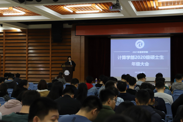 为了帮助研一同学明确未来发展方向,做好就业前置工作,2021年4月1日晚上18:00,计算学部2020级硕士研究生年级大会在活动中心101召开,本次年级大会邀请了学部党委副书记单既阳、学部就业负责老师刘文倩共同参加,辅导员王丝雨主持本次大会。