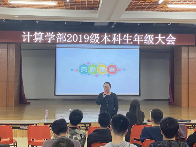 会议伊始,计算学部副主任邬向前首先为同学们解读计算学部2019级本科生培养方案。邬教授为同学们介绍了不同专业以及专业方向的研究方向、学习内容以及学分要求,讲解了不同专业的培养目标,并向同学们介绍了大学四年各学年的课程类别及能力培养要求。他指出,能力比知识更加重要,同学们在学习中一定要注重能力的培养,争取在未来成为各领域中的领军人物和杰出人才。