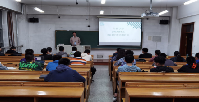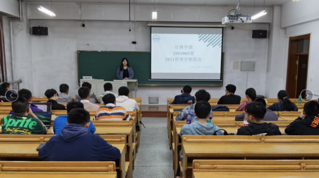 经过了一个假期的养精蓄锐,2003005班全体同学迎来了一个崭新的学期。为了能让大家尽快熟悉认识,融入成为一个团结的大家庭,同时能对新学期有一个全面的了解并做出学习、科研等方面的规划,2021年9月14日晚18点30分,计算学部2003005班在正心楼226教室召开了2021年秋季学期第一次班会,计算学部2020级本科生辅导员王迪参加了本次班会。