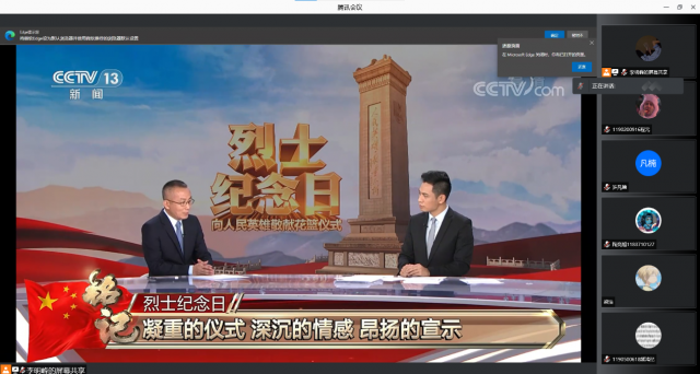 2021年9月30日是我国的第八个烈士纪念日。为了弘扬烈士精神,培养学生爱国情怀,计算学部1937101团支部组织团支部全体同学通过腾讯会议集体观看向人民英雄敬献花篮仪式。