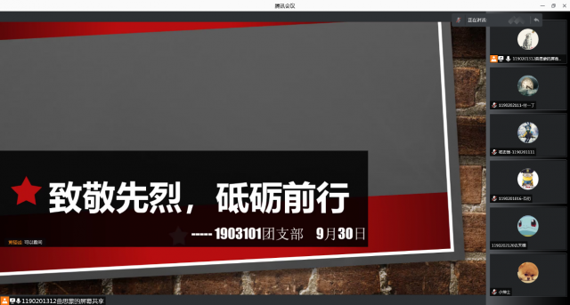 2021年9月30日是国家第八个烈士纪念日,为加深学生对革命烈士先进事迹与精神的了解,计算学部1903101团支部于2021年9月30日晚在线上开展了以“致敬先烈,砥砺前行”为主题的团日活动。团支书组织支部团员学习烈士事迹并观看相关影片。