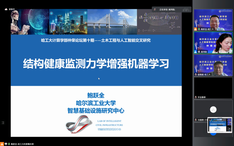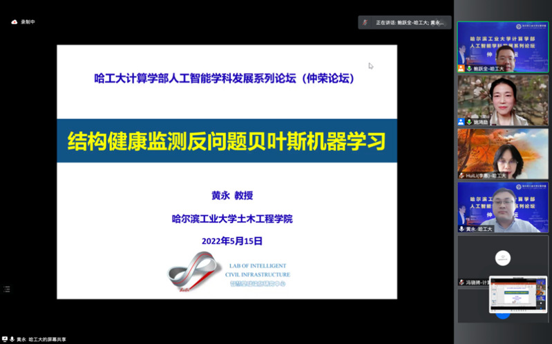 5月15日下午,计算学部在线举办了第十期人工智能学科发展论坛(仲荣论坛)。本次论坛的主题为“土木工程与人工智能交叉研究”,邀请到浙江大学CAD&CG国家重点实验室章国锋教授、华中科技大学土木与水利工程学院陈维亚副研究员、腾讯AI Lab谢浩哲高级研究员、及我校土木工程学院黄永教授、鲍跃全教授和金晓威助理教授作专题报告。论坛由哈工大计算学部与哈工大土木工程学院、科工院交叉科学处联合主办,哈工大人工智能研究院和黑龙江省人工智能头雁团队承办。计算学部主任刘挺教授、土木工程学院李惠教授及校内相关领域师生参加本次论坛。活动由计算学部姚鸿勋教授和土木工程学院鲍跃全教授主持。